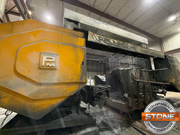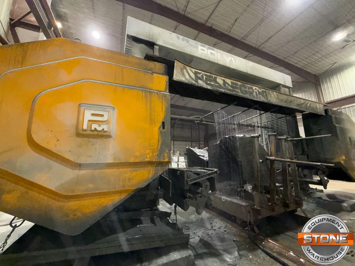 The Polywire machine was designed and manufactured to sew marble, granite and other ornamental stones by the means of several diamond wires at the same time. These diamond wires are turned by means of two flywheel sets, a movable set and an idle set moved on the horizontal plan so as to ensure the hydraulic tensioning of every single wire. The cutting motion is obtained by means of the vertical sliding of the two flywheel groups on two drive columns. The cooling of the diamond wires is carried out by water that is also utilized to drag the cutting debris away, in this way reducing the emission of dust to air.