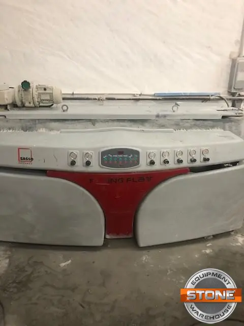 The polisher is a 2006 model year, re-built in 2020 by Sasso mechanic and parts dealer Ned Shaw. Works as it should but does not read out the speed rate. In and out feed roller tables included.