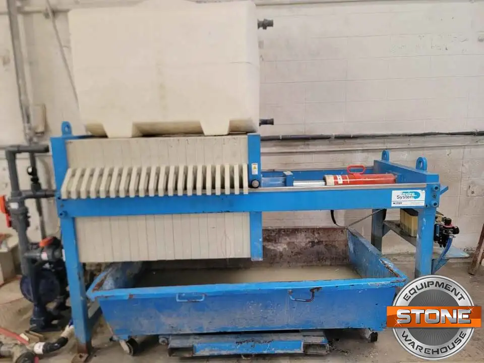 Used Filter Press, pumps, and tank. The tank water pump was recently rebuilt, pit diaphragm pump recently rebuilt, hydraulic ram pump recently rebuilt as well.